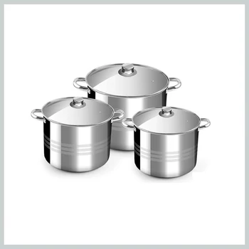 Perfect Home Set de oale din oțel inoxidabil / Set de cratițe cu capace de sticlă ~5/7/9 litri 10269