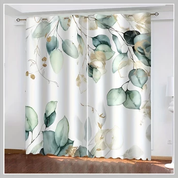 Cortină cu model de frunze de eucaliptus 100 x 220 cm 2 bucăți JA105340