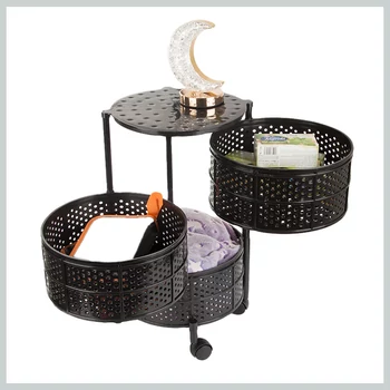 Cărucior metalic de depozitare cu 3 niveluri, coșuri rotunde, negru – 27355