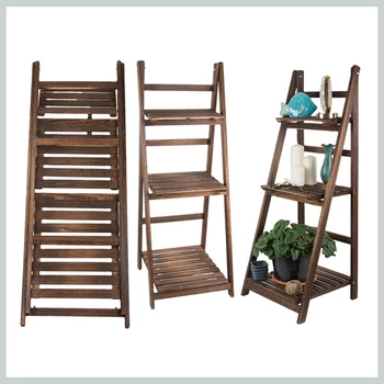 Etajeră pliabilă pentru flori din lemn, maro închis, cu 4 rafturi – 27396_BR