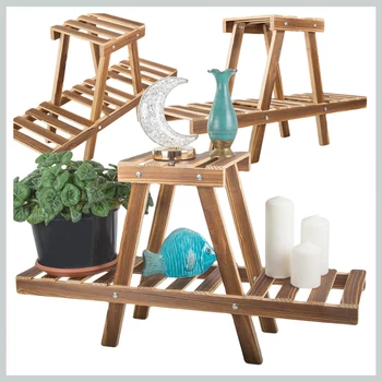 Etajeră din lemn pentru flori, pe mai multe niveluri, tip scară, maro – 27395