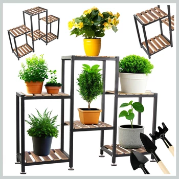 Suport pentru flori din metal și lemn, cu dispunere în trepte, 6 rafturi – 27401
