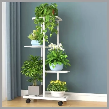 Suport de flori metalic pentru interior/exterior cu roți, 4 niveluri, alb AF122560-b