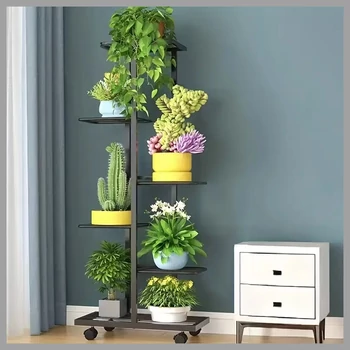 Suport metalic pentru flori pentru interior/exterior cu roți, 6 niveluri - negru - AF122560-c