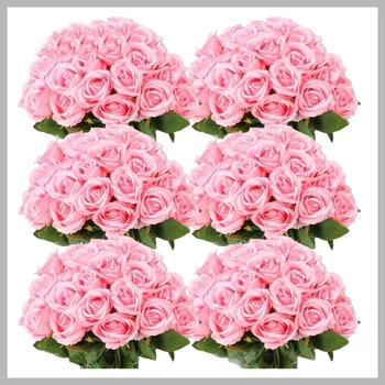 60 bucăți trandafiri artificiali cu tulpină – roz – GA2072486-c