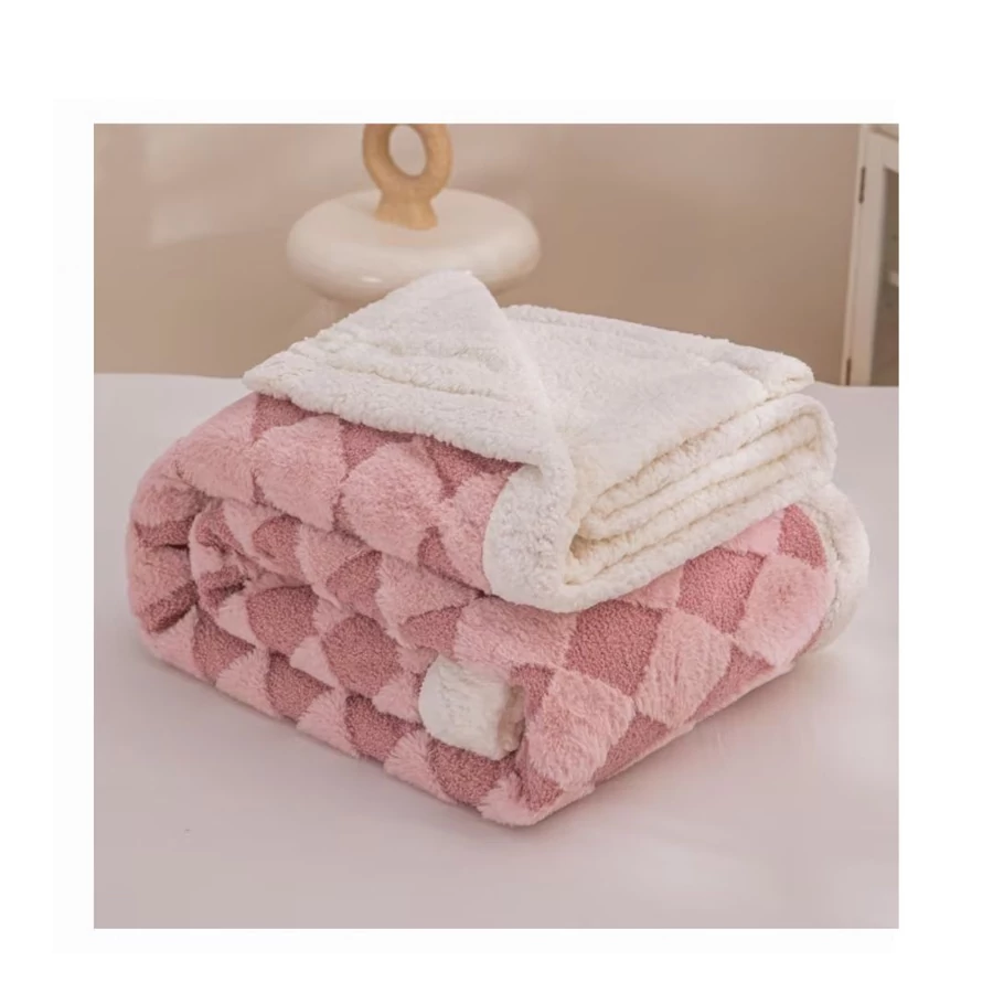 Această pătură Sherpa de calitate premium este companionul perfect pentru serile reci. Partea superioară roz, decorată cu model romboidal, și interiorul moale, cu efect de lână de miel, creează o senzație de confort și lux în orice încăpere.