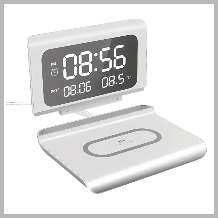 Această stație de încărcare wireless modernă și multifuncțională 6 în 1 nu este doar un accesoriu stilat pentru noptiera sau biroul tău, ci și un dispozitiv practic care face viața de zi cu zi mai comodă. Cu o putere de încărcare rapidă de 15W, acest încărcător wireless este compatibil cu dispozitive iPhone, Android și Apple Watch, oferind totodată două porturi USB suplimentare pentru încărcarea altor gadgeturi.